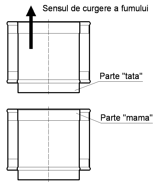 Aceasta insemana ca partea "mama" va fi intotdeauna in sus iar partea "tata" in jos, pentru a asigura scurgerea condensului prin interiorul tubului interior spre capacul de condensatie.