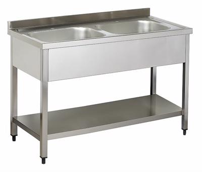 Spalator din inox cu polita si doua cuve, fara picurator, 1200x700x850mm, cuva 400x400x300mm