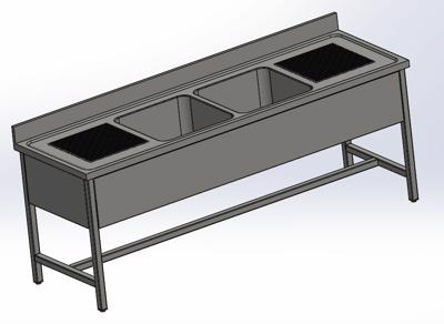 Spalator din inox cu cadru H, doua cuve si doua picuratoare, 2200x700x850mm, cuva 500x500x300mm
