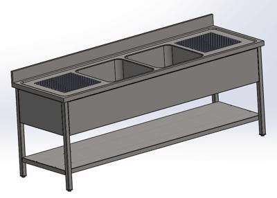 Spalator din inox cu polita, doua cuve si doua picuratoare, 2200x700x850mm, cuva 500x500x300mm