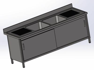 Spalator din inox cu usi glisante, doua cuve si doua picuratoare, 2200x700x850mm, cuva 500x500x300mm
