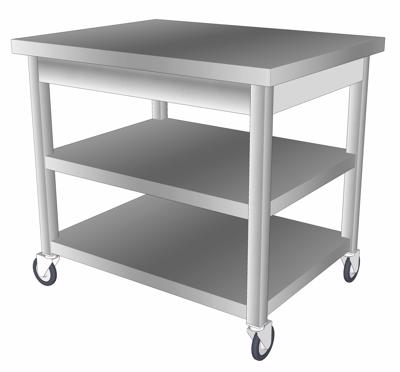 Masa inox centrala mobila cu 2 polite, seria 600, 1200x600x850mm