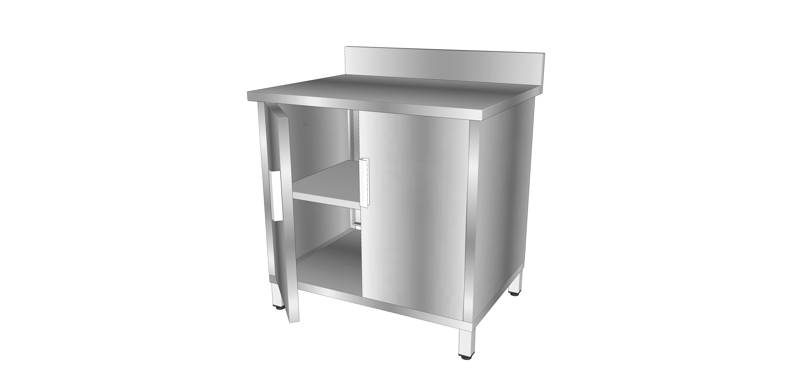 Masa inox tip dulap cu rebord, cu usi batante si 1 polita, seria 700, 800x700x850mm