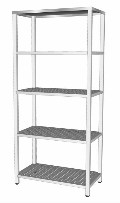 Raft inox demontabil cu 5 polite perforate, seria 400, 1000x400x1800mm