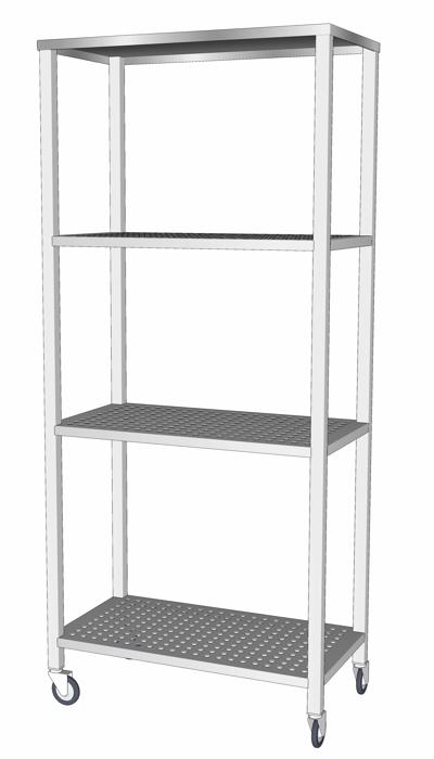 Raft inox mobil cu 4 polite, seria 500, 1000x500x1800mm
