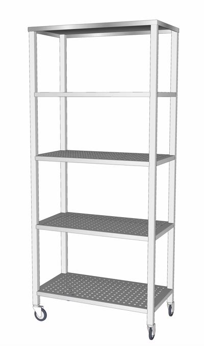 Raft inox mobil cu 5 polite perforate, seria 600, 1000x600x1800mm