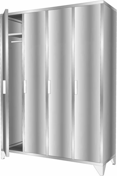Vestiar inox cu patru usi, 1200x450x1800mm